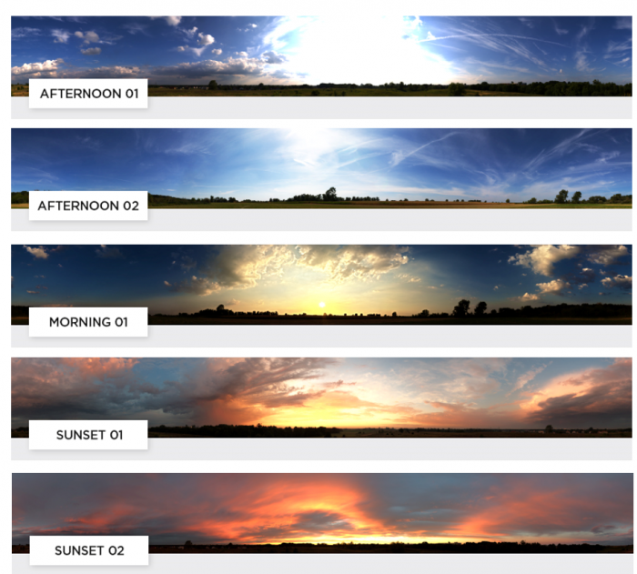 標準で以下のようなHDRI画像が準備されています。