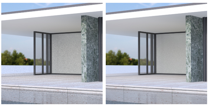 ノイズ比較 – 左:Exterior default、右:Exterior Fine AA