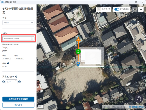 SketchUpでモデルを作成している場合は、モデルを表示して位置を設定することができます。