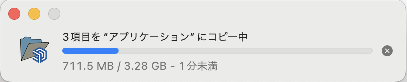 完了したら上図表示は消えます。下図のウインドウはXで閉じてください。
