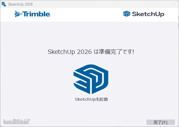 インストールが完了したら、SketchUpを起動してください。