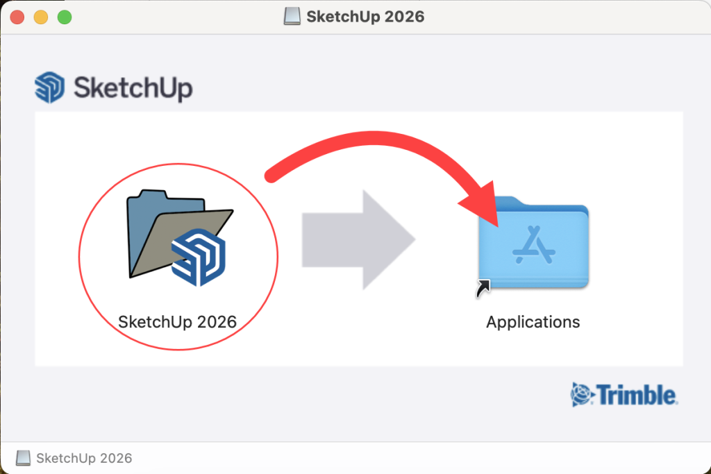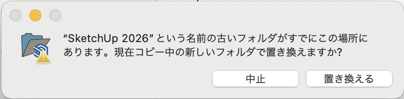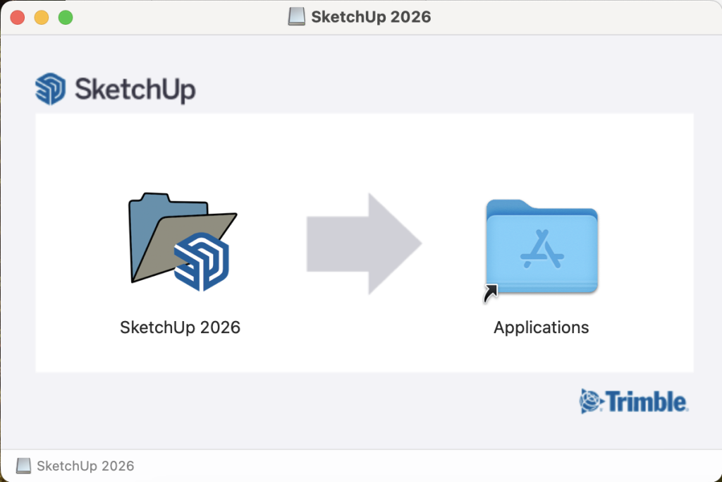 「SketchUp2026」を「Applications」にドラッグ&ドロップします。