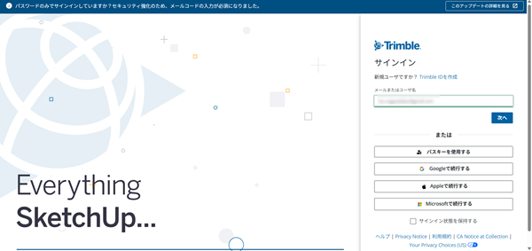SketchUpの開発元であるTrimble社が提供している情報をご確認ください。