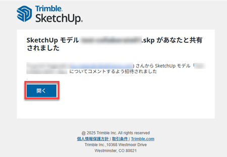 | 件 名 | SketchUp モデル XXXXX.skp があなたと共有されました |